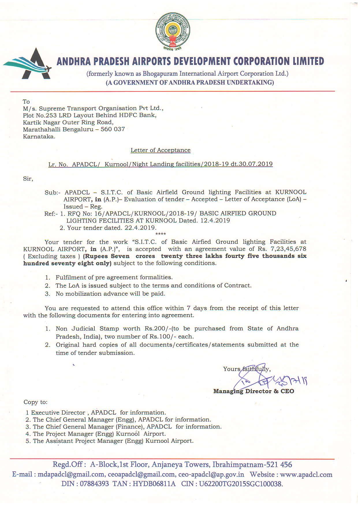 Orvakkal Kurnool Airport, Govt of Andhra Pradesh 2019 Rs. Undisclosed