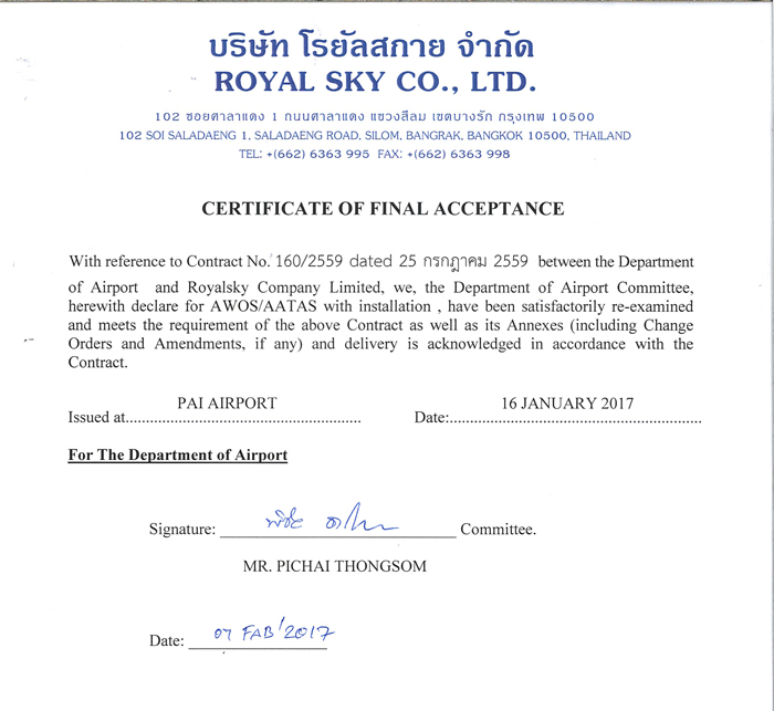 PAI Airport, Thailand 2016 US$ Undisclosed