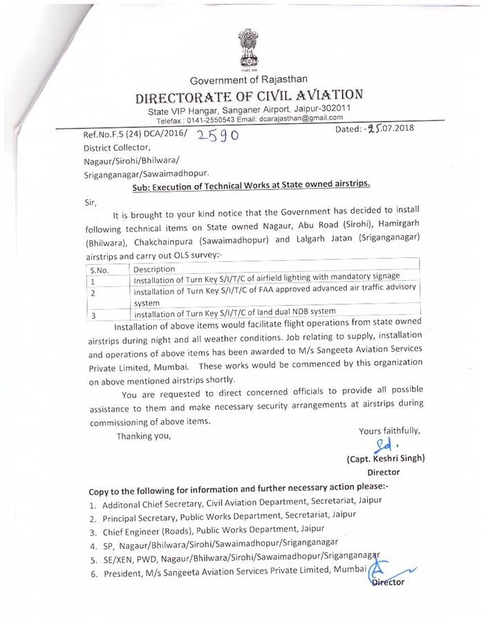 5 Airstrips, Govt of Rajasthan 2018 Rs. Undisclosed
