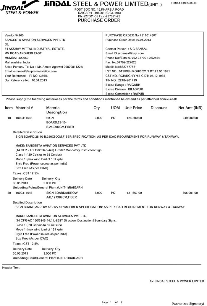 Jindal Raigarh Airport, Chhattisgarh, India 2013 Rs. Undisclosed/-