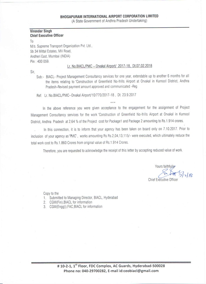 Orvakkal Kurnool Airport, Govt of Andhra Pradesh 2019 Rs. 7,23,45,678.90/-