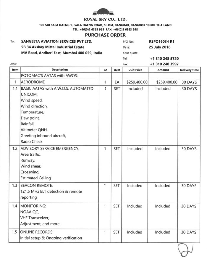 PAI Airport, Thailand 2016 US$ 250,000/-