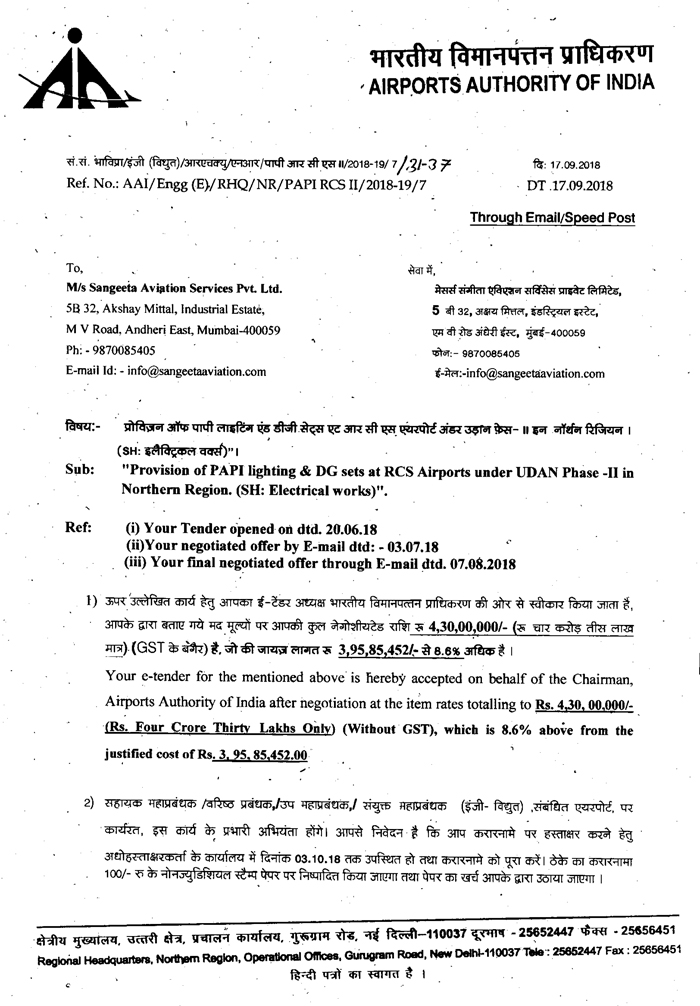 AAI 9 Airports across Uttar Pradesh 2018 Rs. 4,30,00,000/-