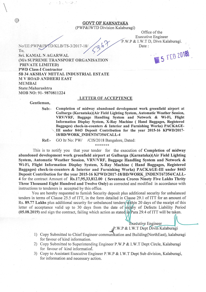 GULBARGA Airport, Karnataka, India 2018 Rs. 17,95,33,812.00/-