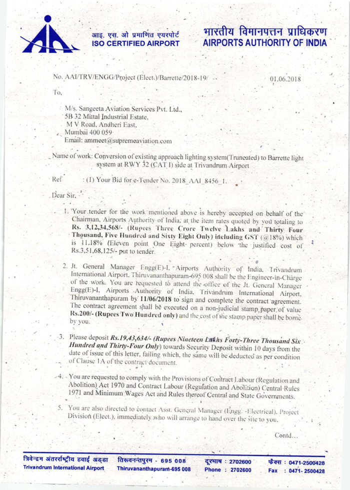 AAI TRIVANDRUM Airport, Kerala, India 2018 Rs. 3,12,34,567/-