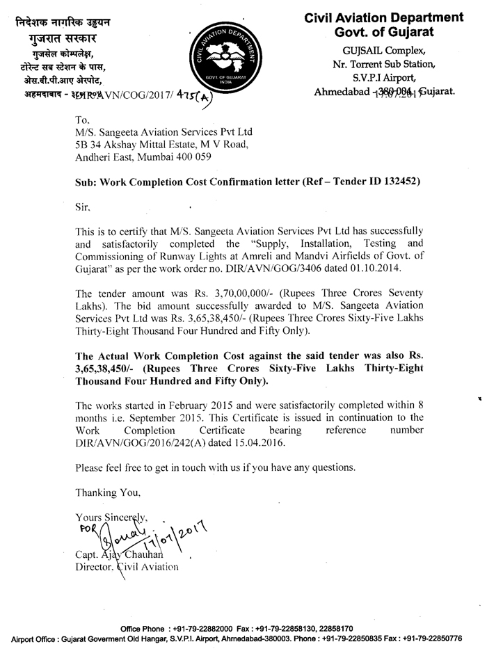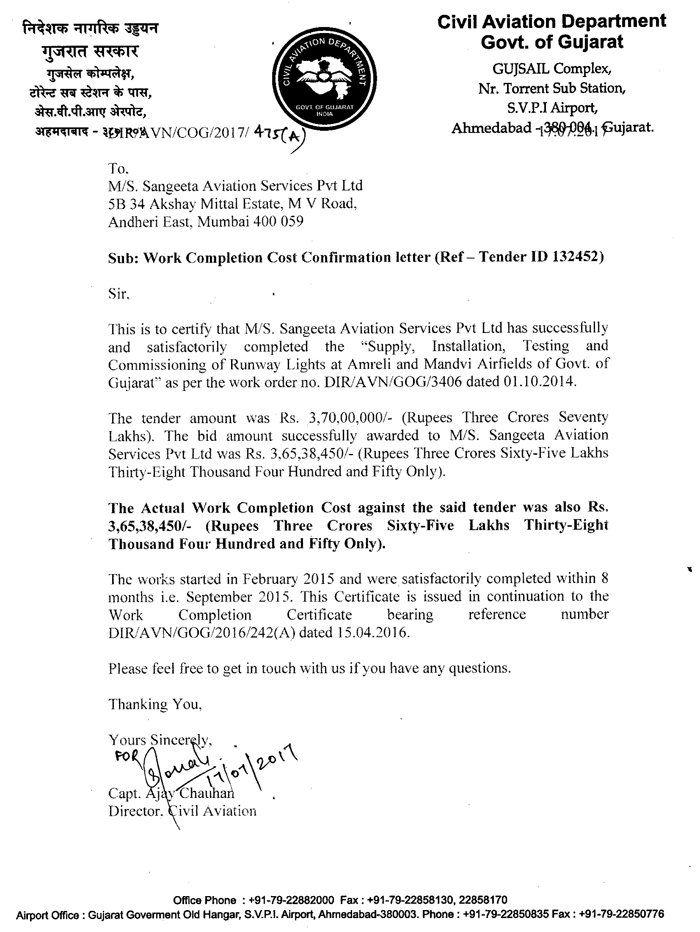 Amreli Airport, Gujarat, India 2015 Rs. 3,65,38,450/-