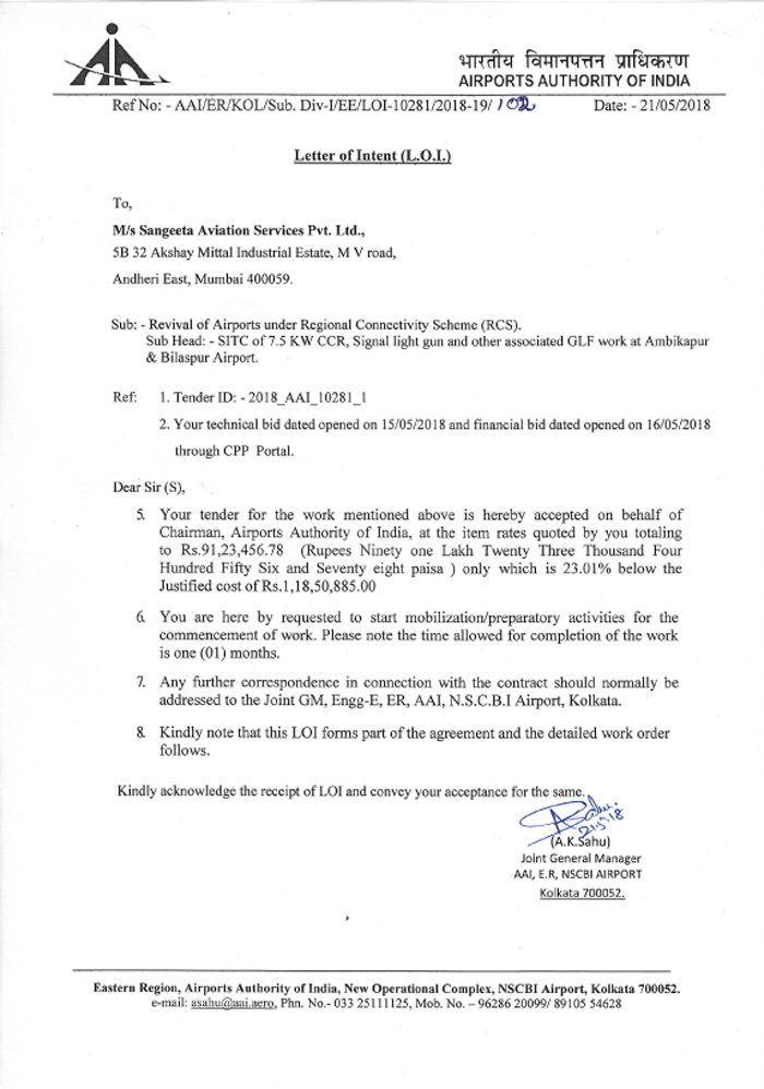AAI AMBIKAPUR Airport & BILASPUR Airport 2018 Rs. 91,23,456.78/-