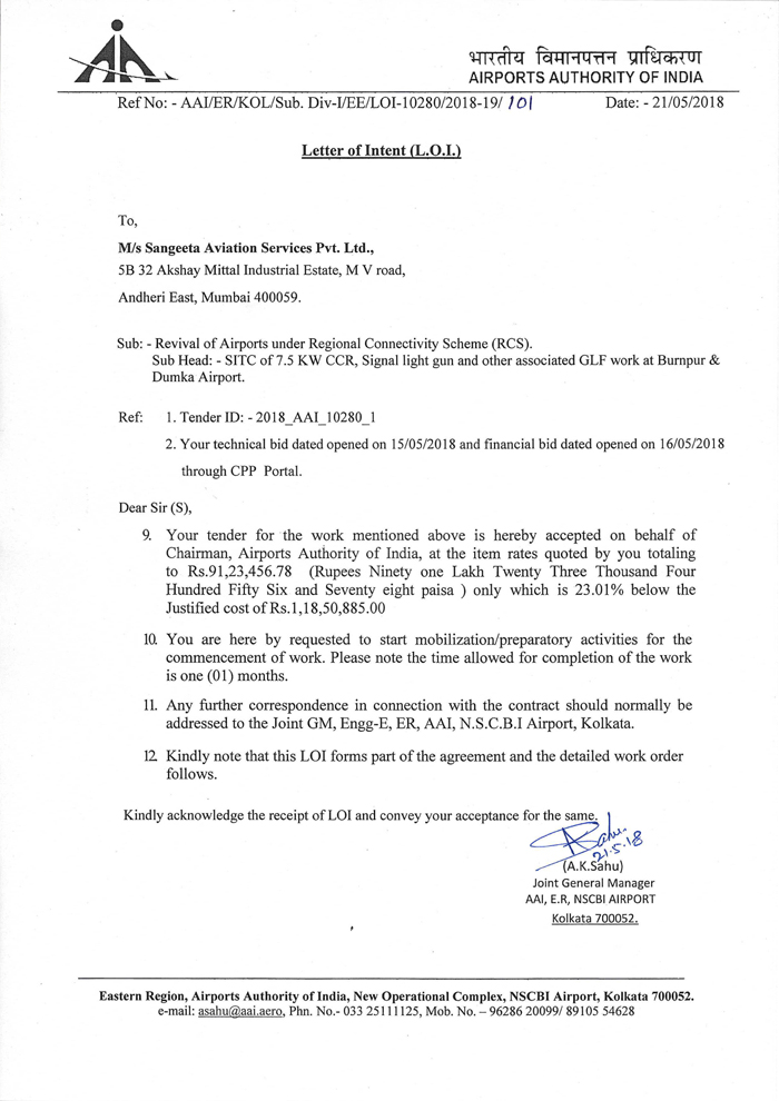 AAI BURNPUR Airport & DUMKA Airport 2018 Rs. 91,23,456.78/-