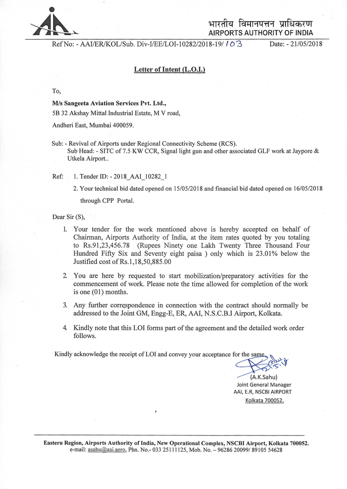 AAI JEYPORE Airport & UTKELA Airport 2018 Rs. 91,23,456.78/-