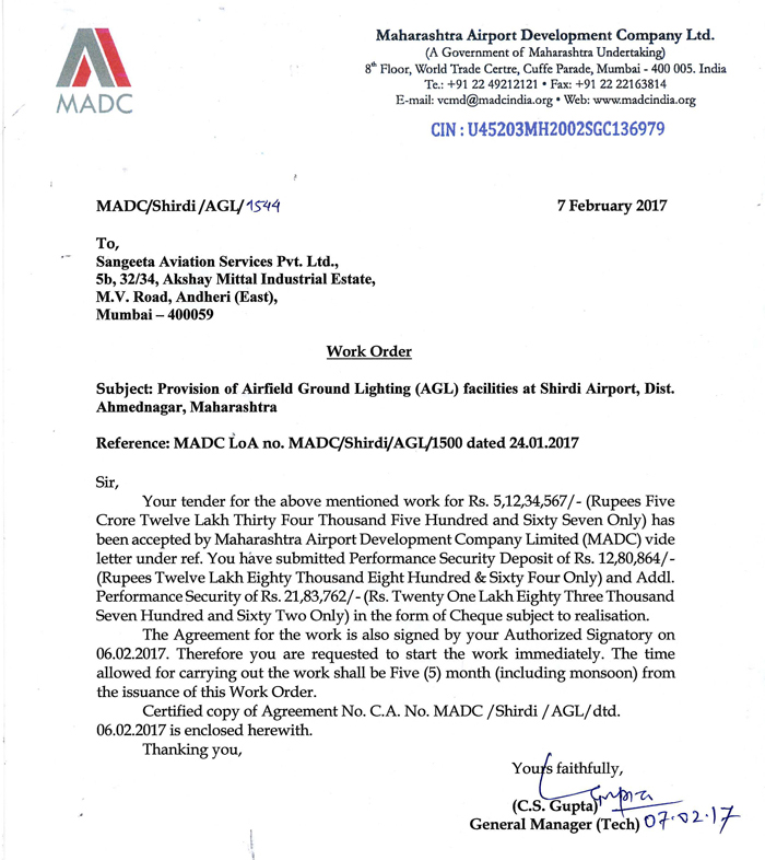 Shirdi Airport, Maharashtra, India 2017 Rs. 5,81,89,309.99/-